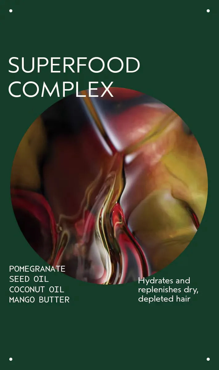 • luxurious omega-5 rich organic pomegranate oil nourishes dry, depleted hair