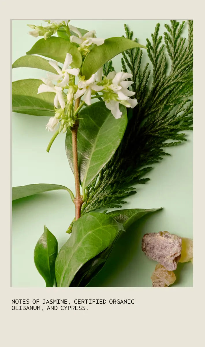 • Infuses hair with an iconic earthy aroma with jasmine and certified organic olibanum and cypress